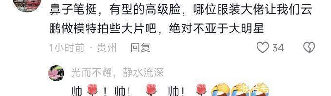 有些网友戏言:这需要与云鹏的父亲取得联系还有一些网友评论说:云鹏的鼻子挺挺的,有着有型的高级脸,哪位服装大佬让我们云鹏做模特拍一些大片吧,绝对不逊色于大明星