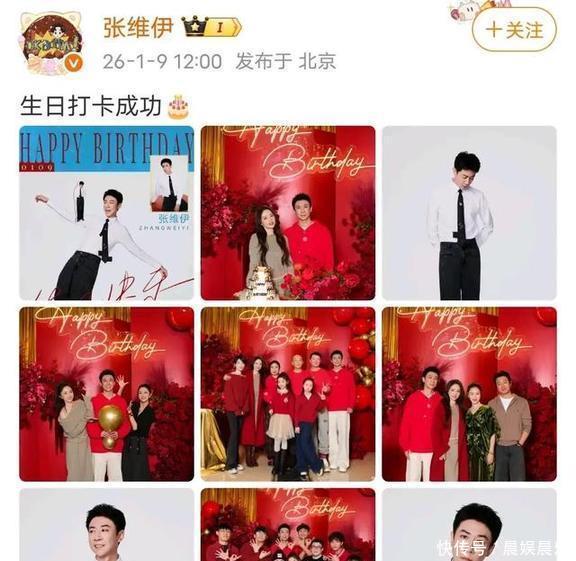 在1月9日,张维伊在社交平台发文:生日打卡成功。而且还弄了个9宫格,其中有4张是单人照,1张是跟董璇的合影,另外4张则是和亲友们一起的合照。张维伊这自恋也不是第一次见了,不过自己生气发个单人照没啥问题,比起官宣结婚的时候发单人照强多了。
